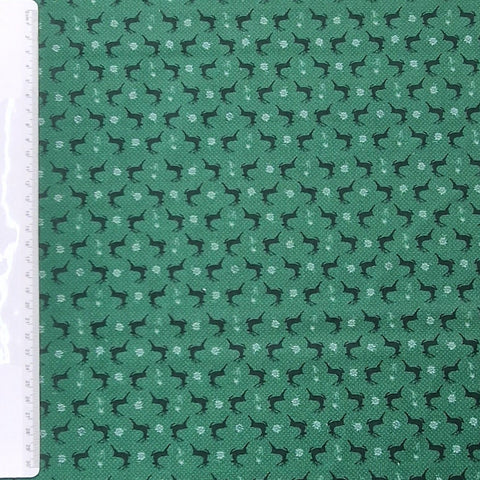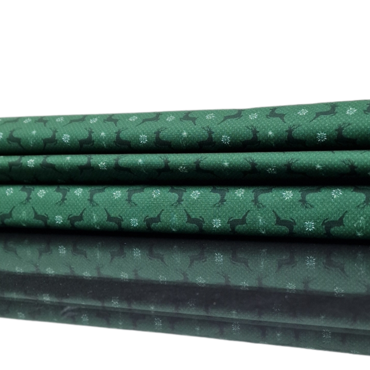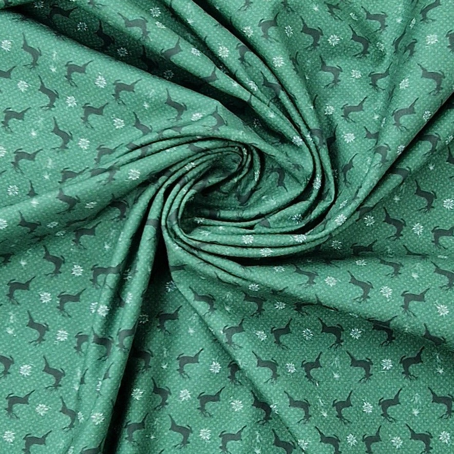 Sehr weicher Baumwollstoff aus 100% Baumwolle in grün mit kleinen Hirschen.