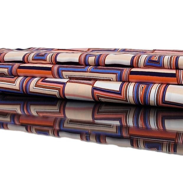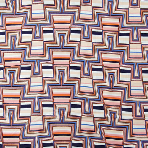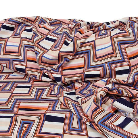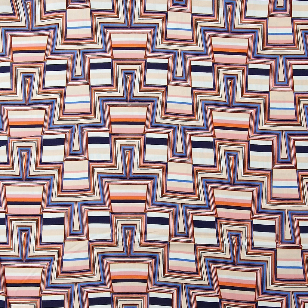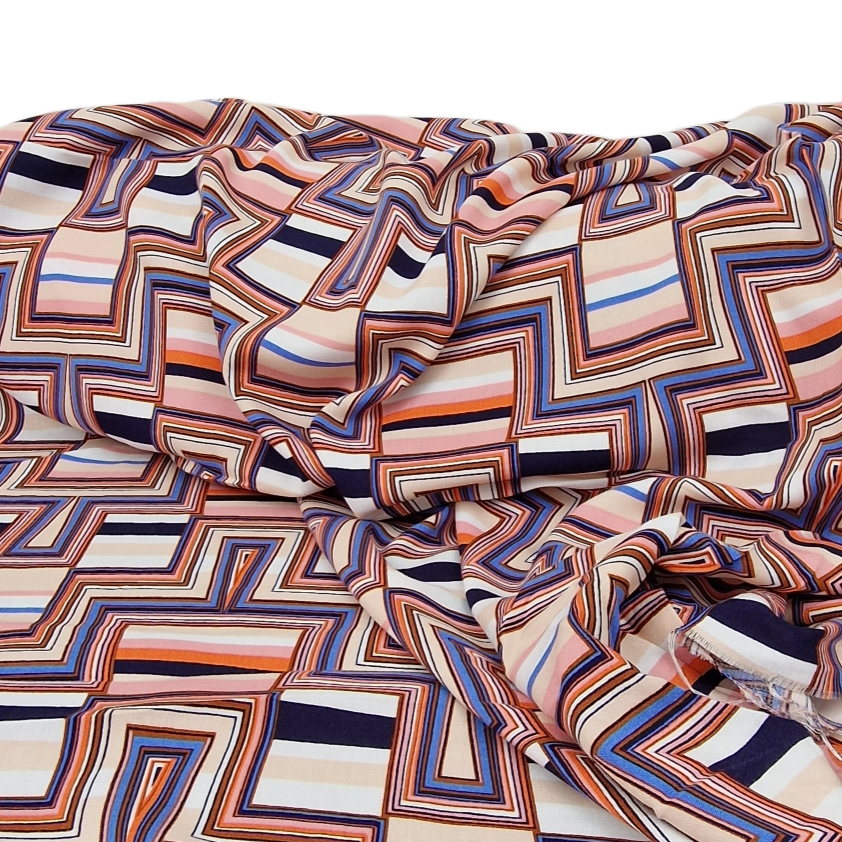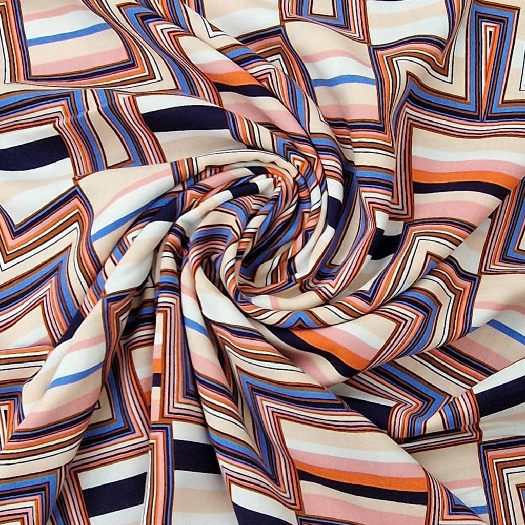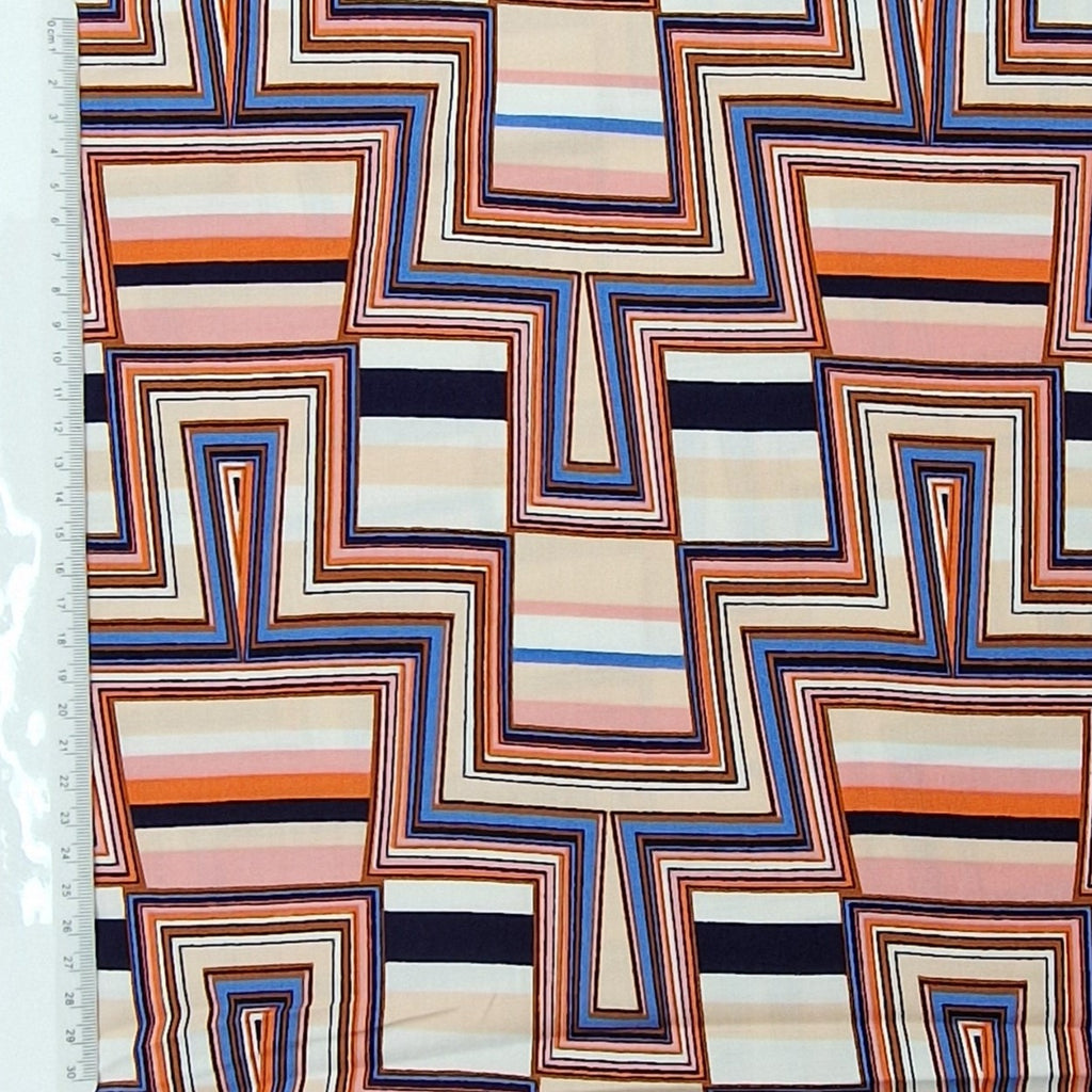 Viskose nude grey mit einem Hautfarbenem Hintergrund und Kreisen in terracotta und blau.
