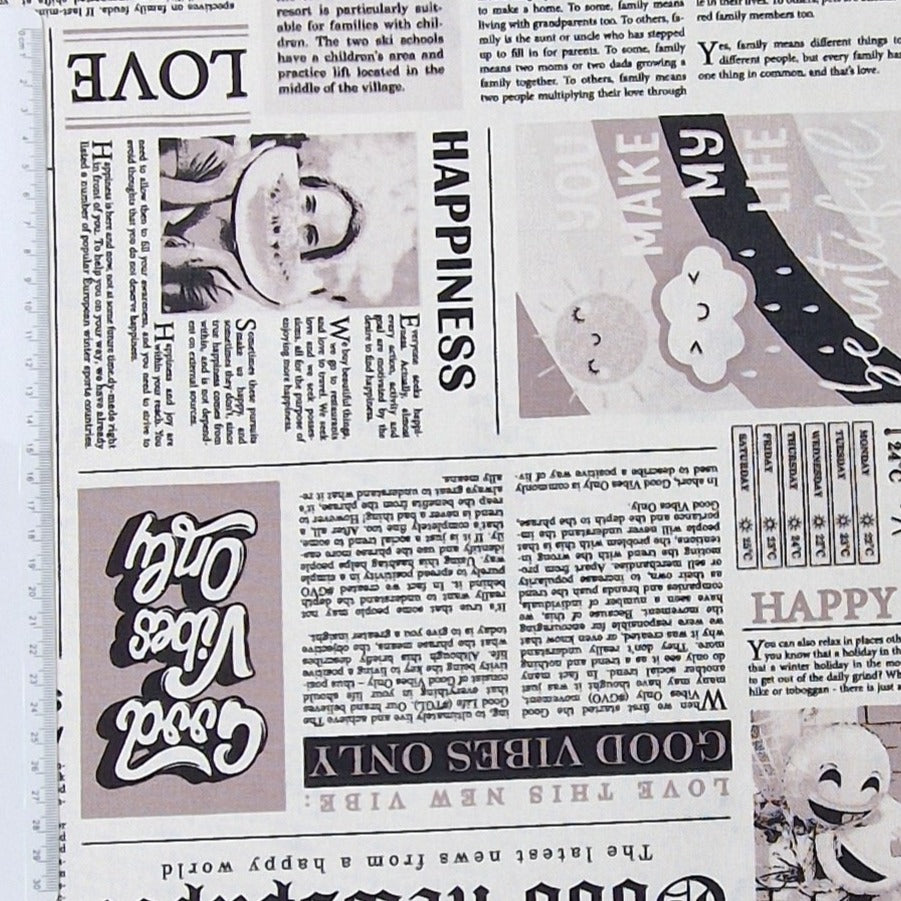 Dekostoff mit Zeitungsartikeln  als Aufdruck. Daily News Time