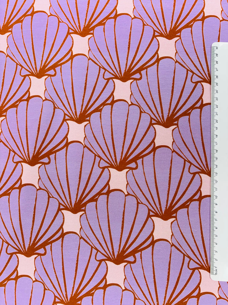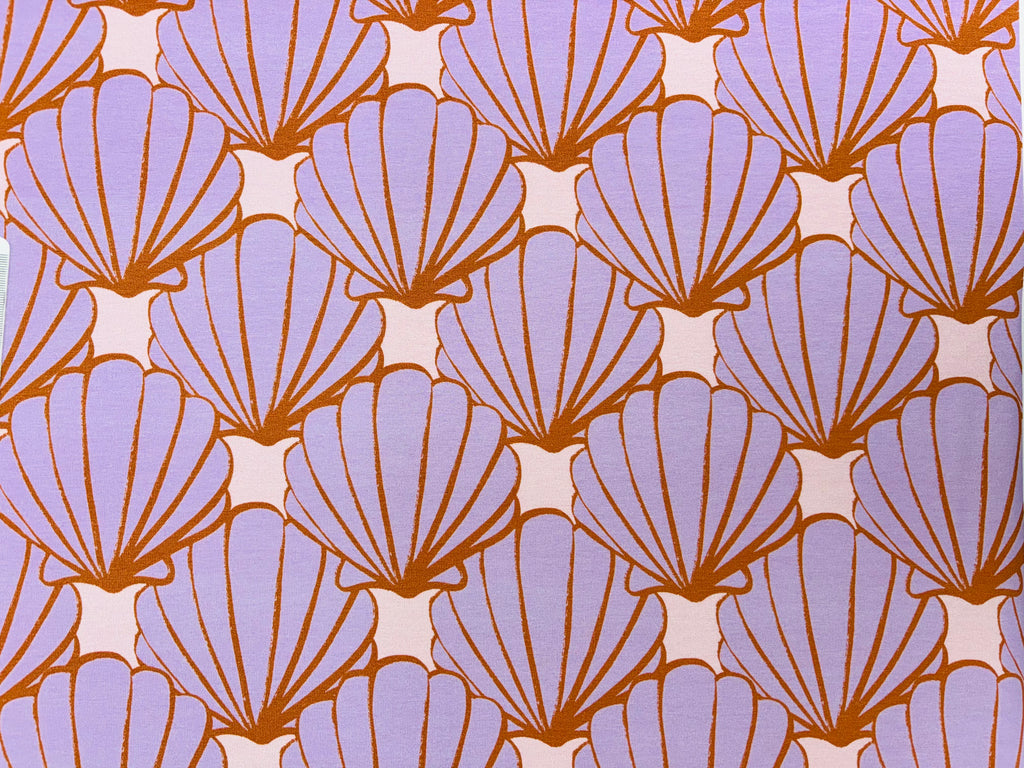 Dieser Jersey in diesen perfekt abgestimmenten Farben mit diesen wunderschönen Muscheln ist perfekt für dein Sommerkleid.