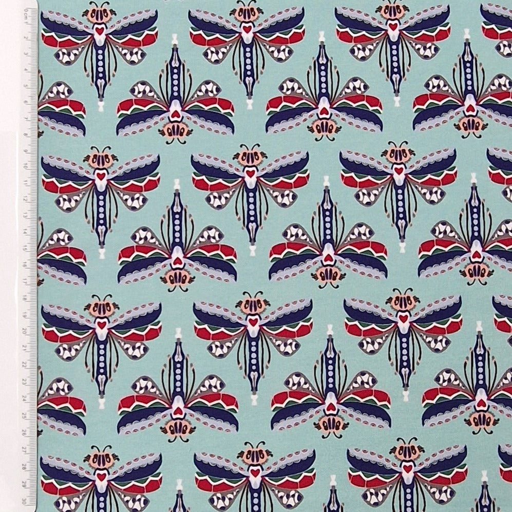 Farbe & Motiv: türkis mit blau / roten Libellen