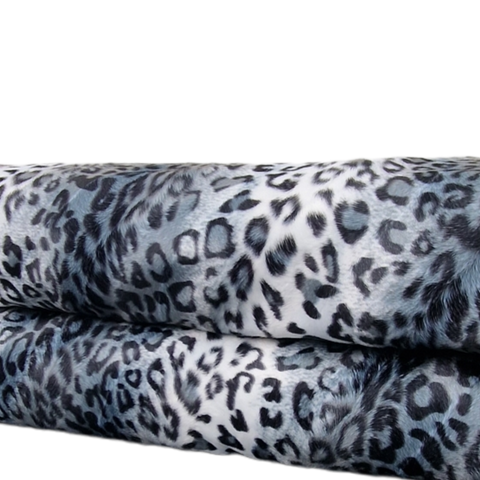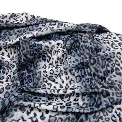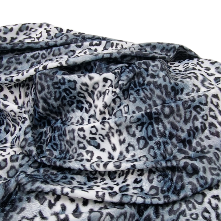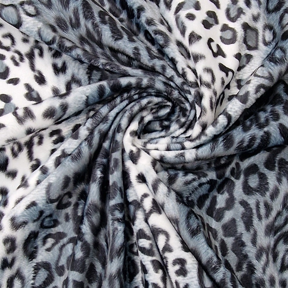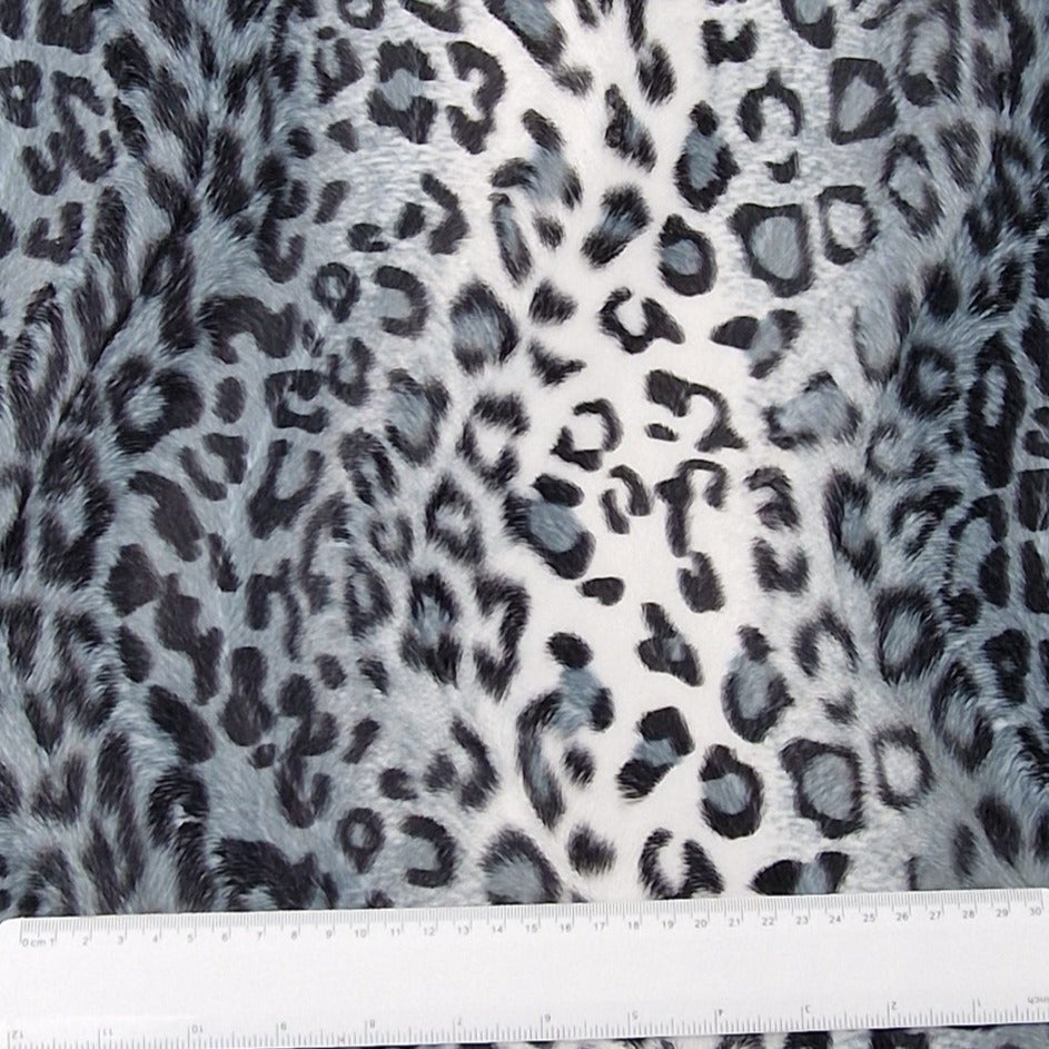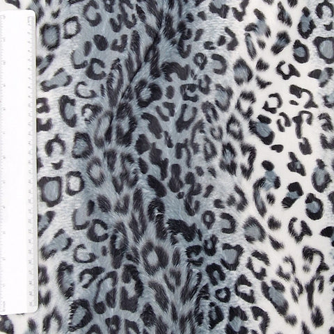 Kuschelweiches Fellimitat mit dem Muster eines Schneeleoparden.