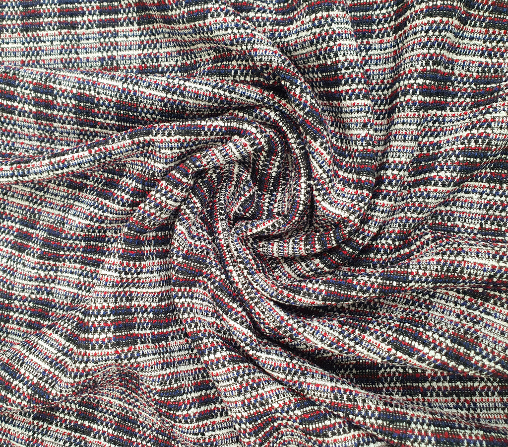 Weicher und kuscheliger Boucle in der Farbe dunkelblau/weiß/rot kariert.