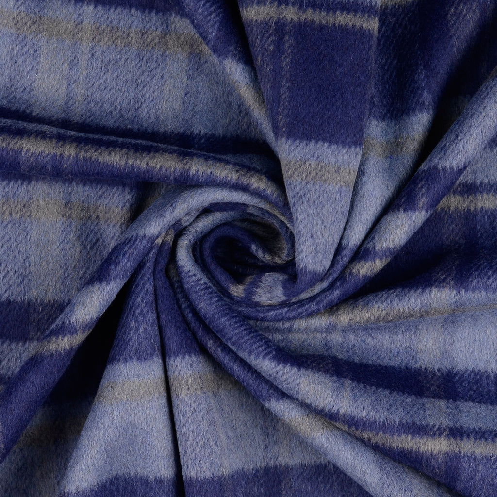 Der wärmende Mantelstoff in blau kariert fühlt sich weich an und gibt ein angenehmes Trageerlebnis. Eine elegante Wahl, die beidseitig tragbar ist - ideal für Mäntel, Ponchos und Jacken.