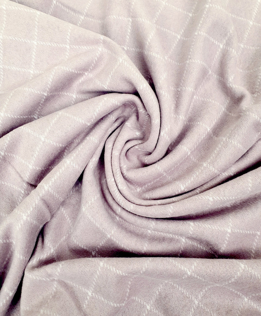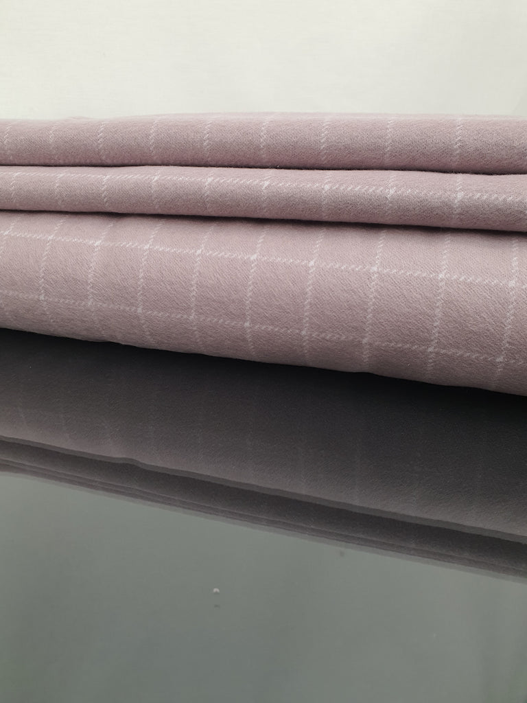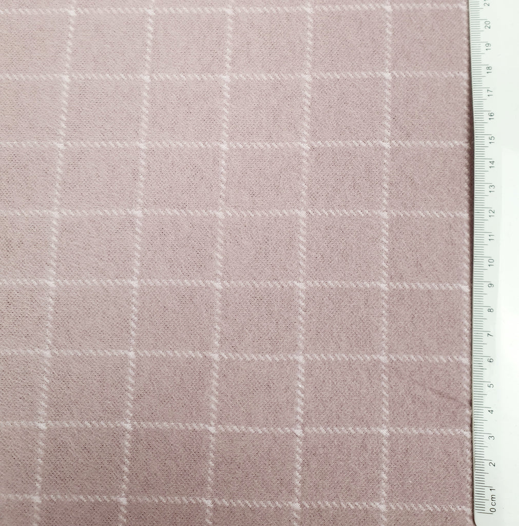 Der leichte Mantelstoff in altrosa mit cremefarbenen Karo fühlt sich weich an und durch die Baumwolle ist es ein sehr angenehmes Trageerlebnis. Der Stoff ist längs- und quer elastisch und deshalb gut ohne Futter und Reißverschluss zu verarbeiten. Die kuschelige Oberfläche ermöglich vom bequemen Sofa Outfit bis zum klassischen Kleid für die Weihnachstfeier wirklich alles.