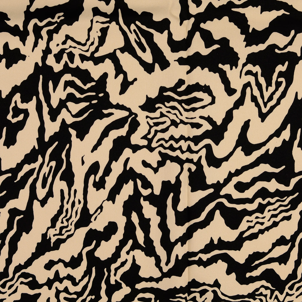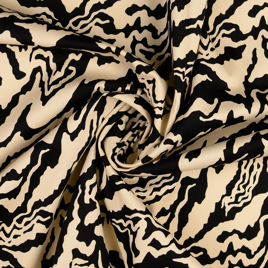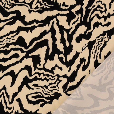 Baumwolle Satin in creme mit schwarzem Muster.
