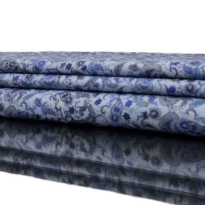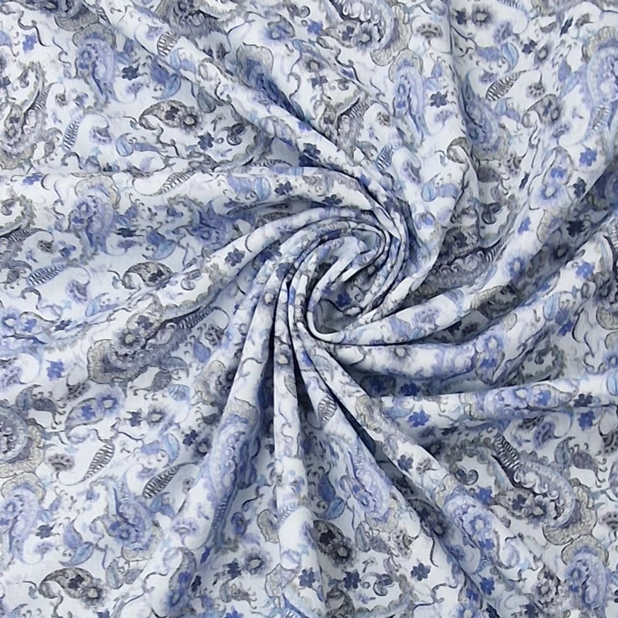 Sehr weicher Baumwollstoff aus 100% Baumwolle in blau mit Paisley Muster in blau als Aufdruck