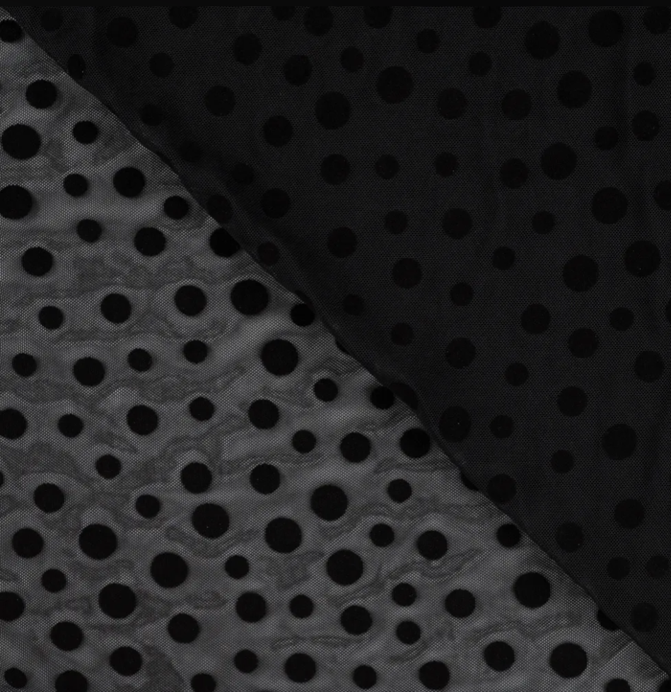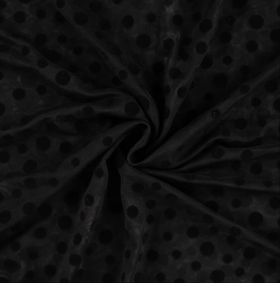 Mesh / Tulle Stoff in schwarz mit schwarzen Punkten (Dots).