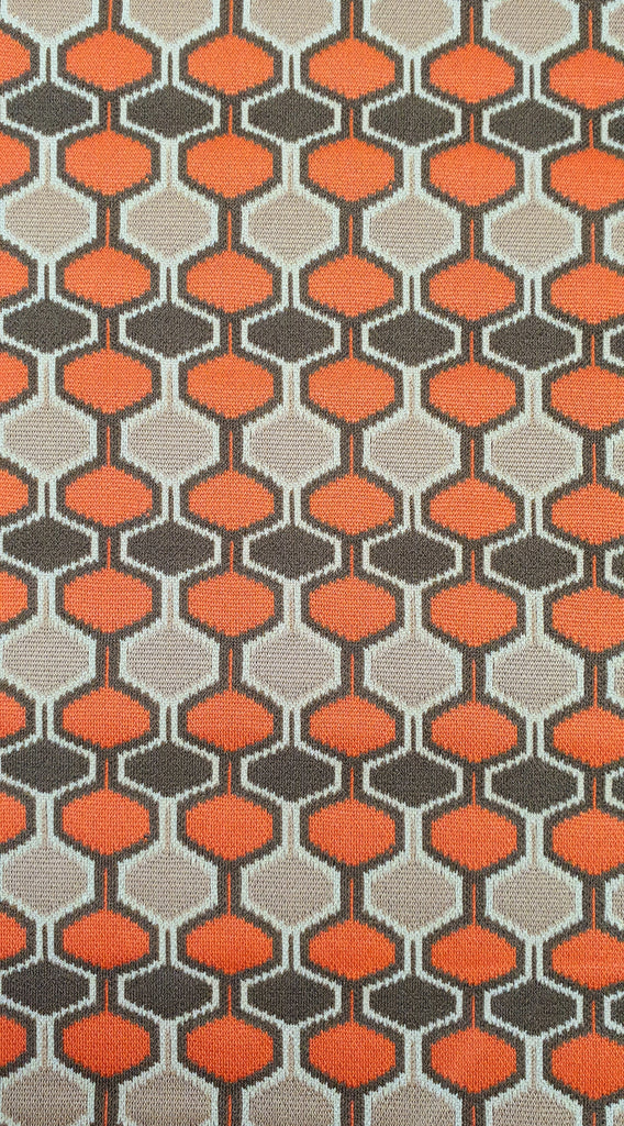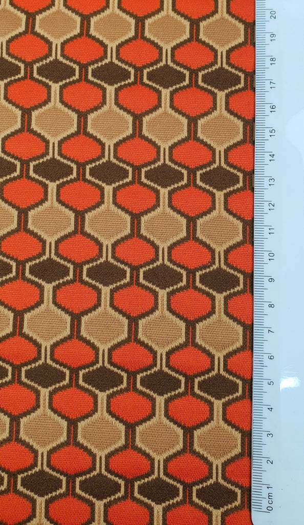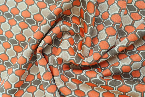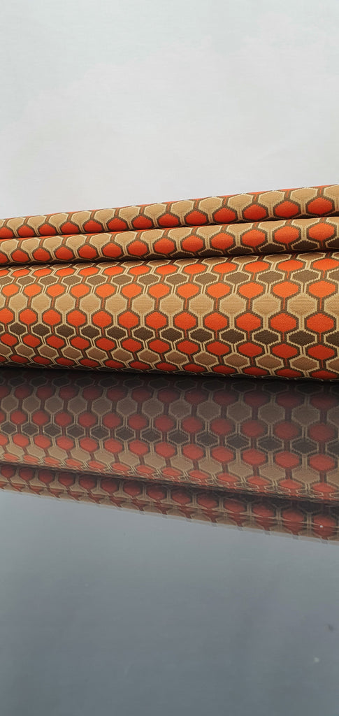 Wool from Prato hat ein grafisches Muster in verschiedenen orange und braun Tönen mit angenehm weichem Griff.