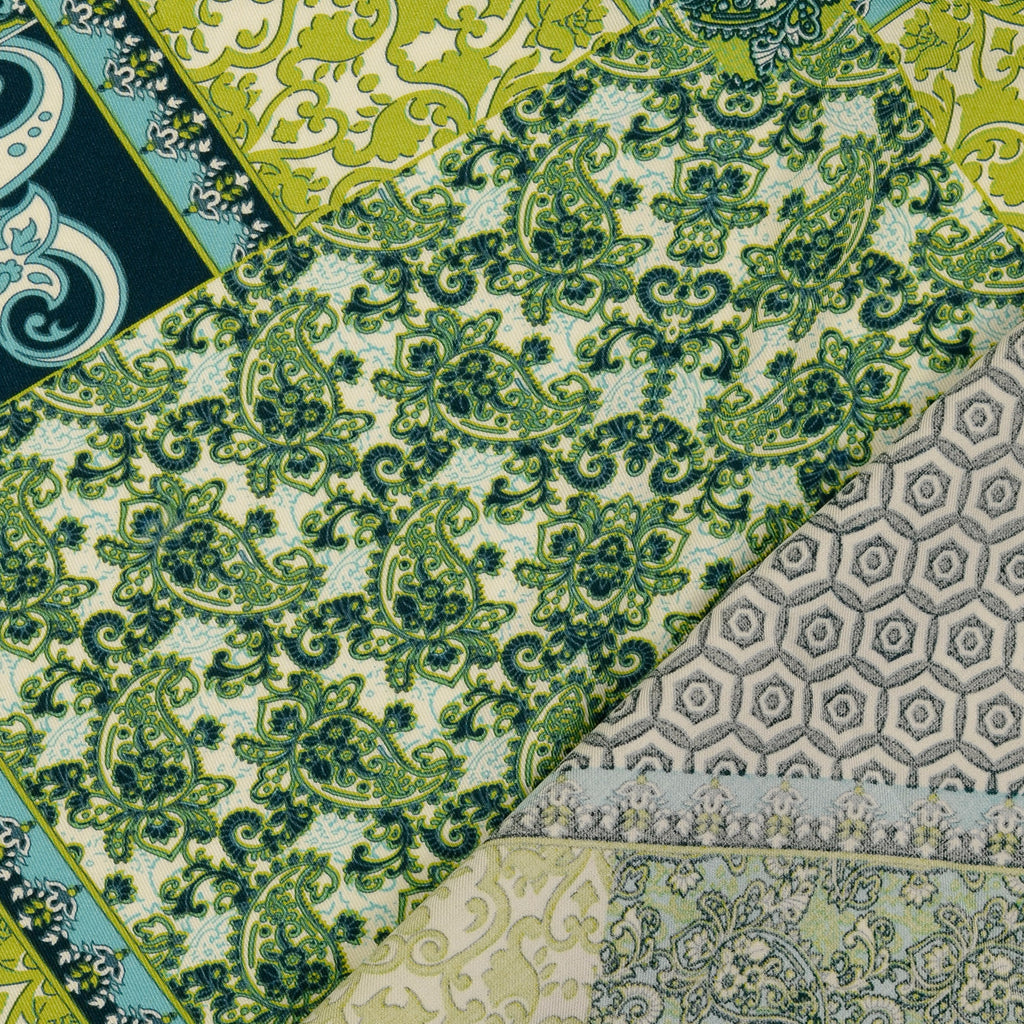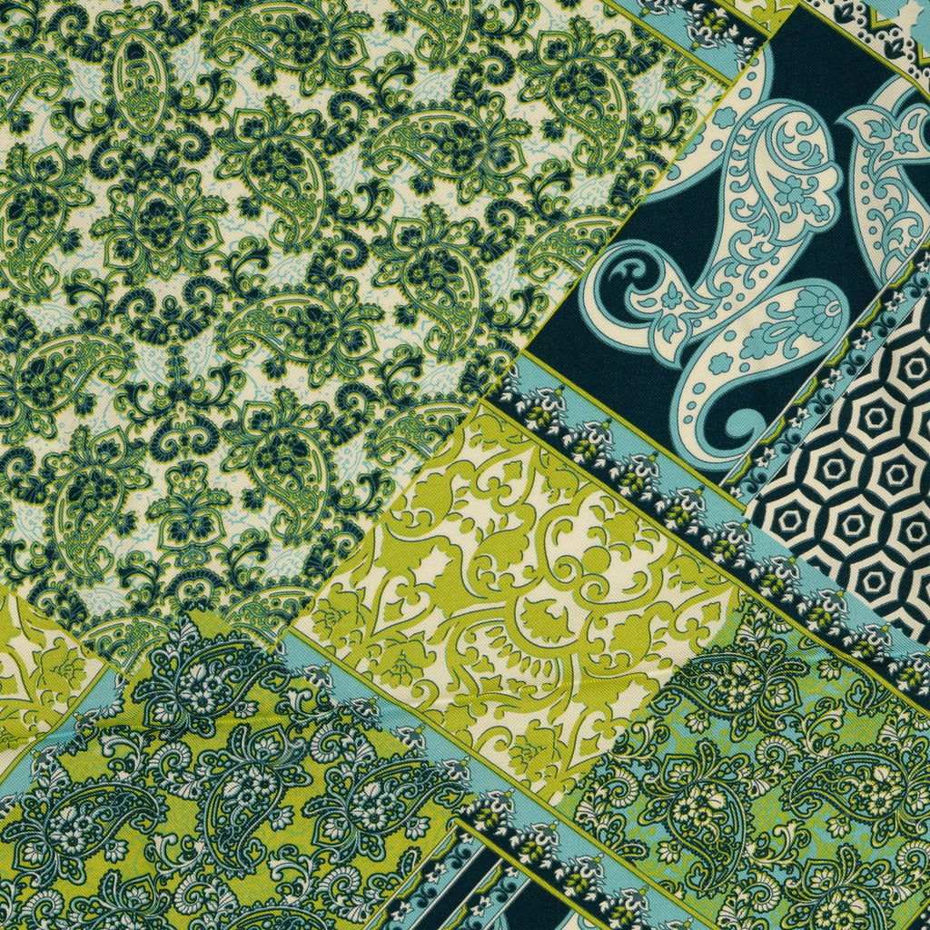 Viscose min grün mit unterschiedlichen Mustern, wie zum Beispiel einem Paisley Muster.