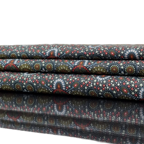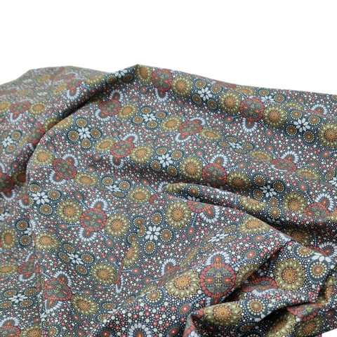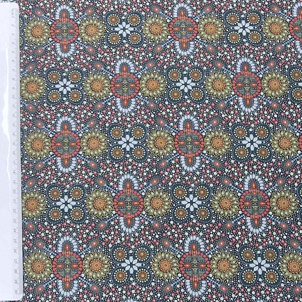Baumwollstoff aus 100% Baumwolle in grün mit Blumen im retro Stil.