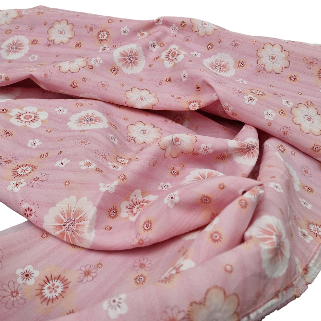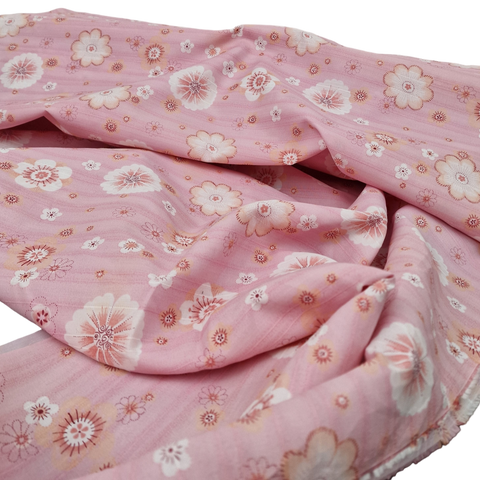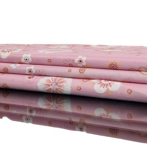 Baumwollstoff aus 100% Baumwolle in rosé / rosa mit weißem und apricotfarbenem Blumenaufdruck.
