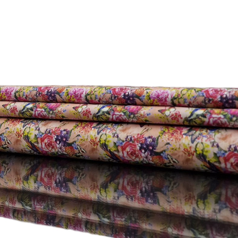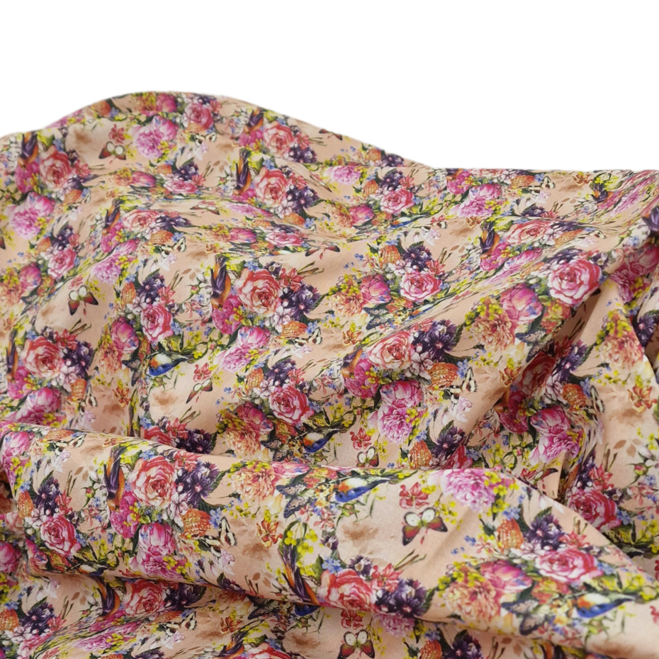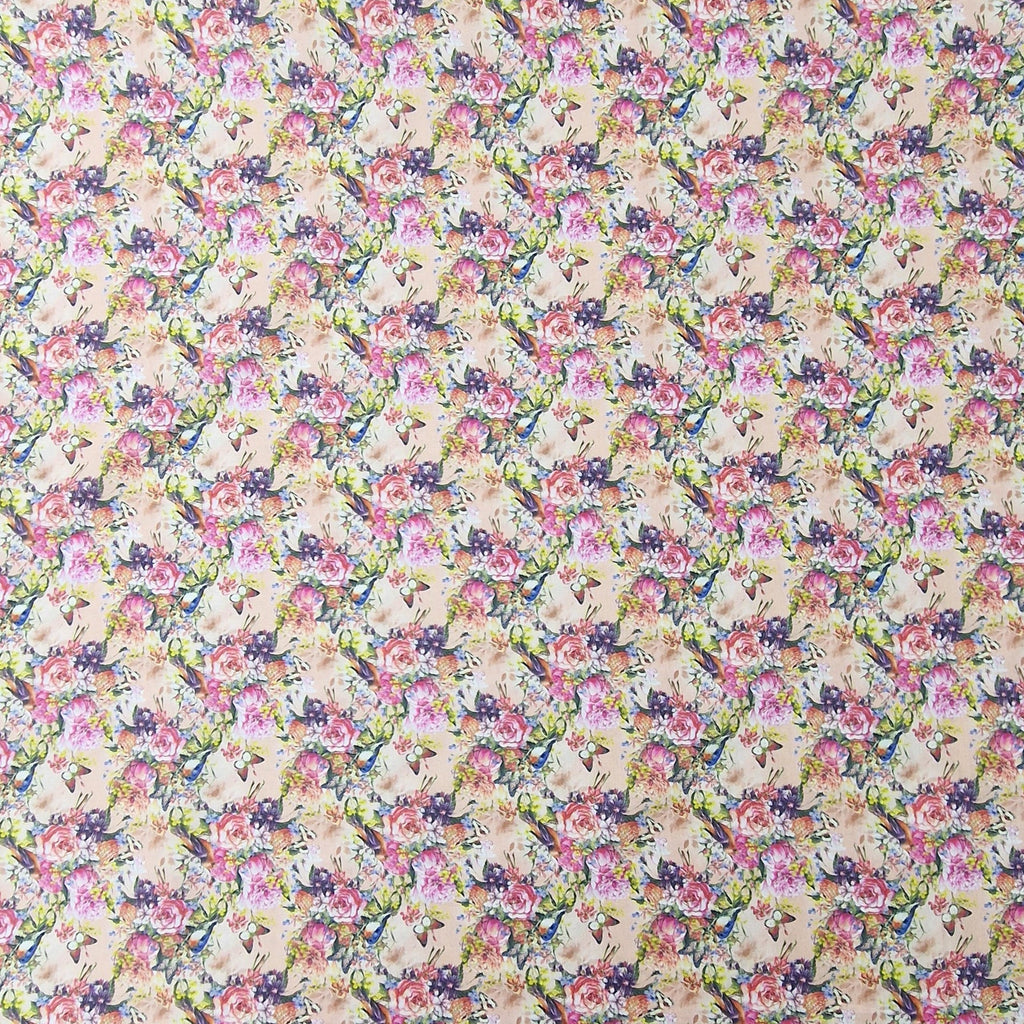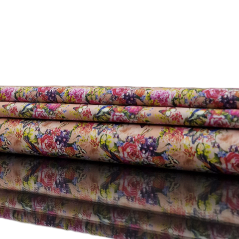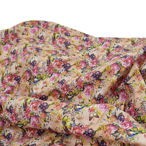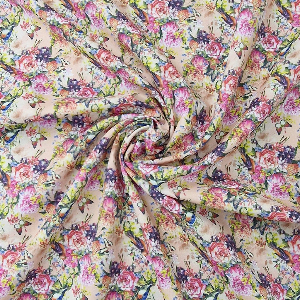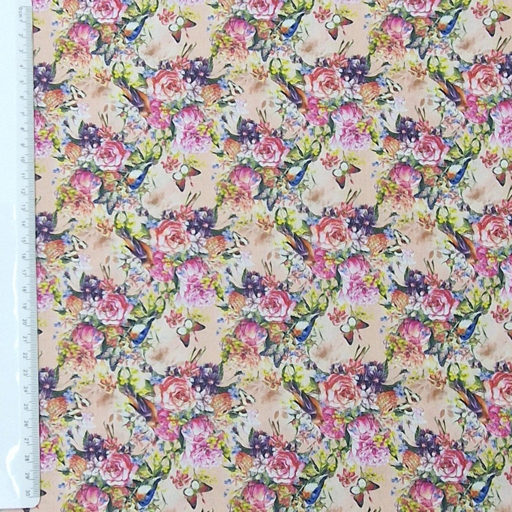 Sehr weicher Baumwollstoff aus 100% Baumwolle in apricot mit Blumen als  Aufdruck