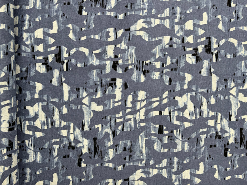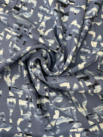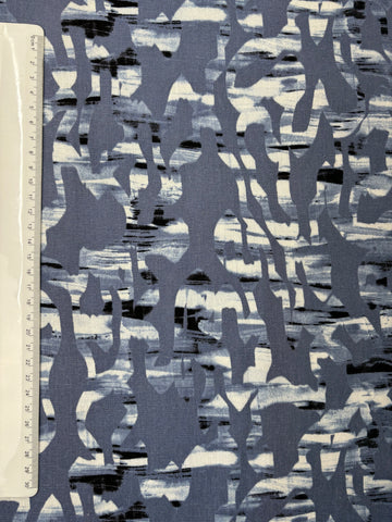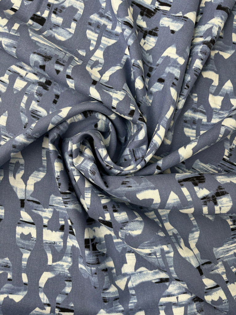 Sommerliche Leinen / Viskose Mischung in verschiedenen blautönen gemustert.