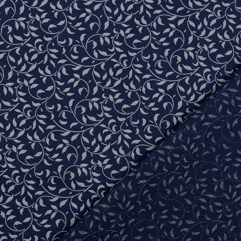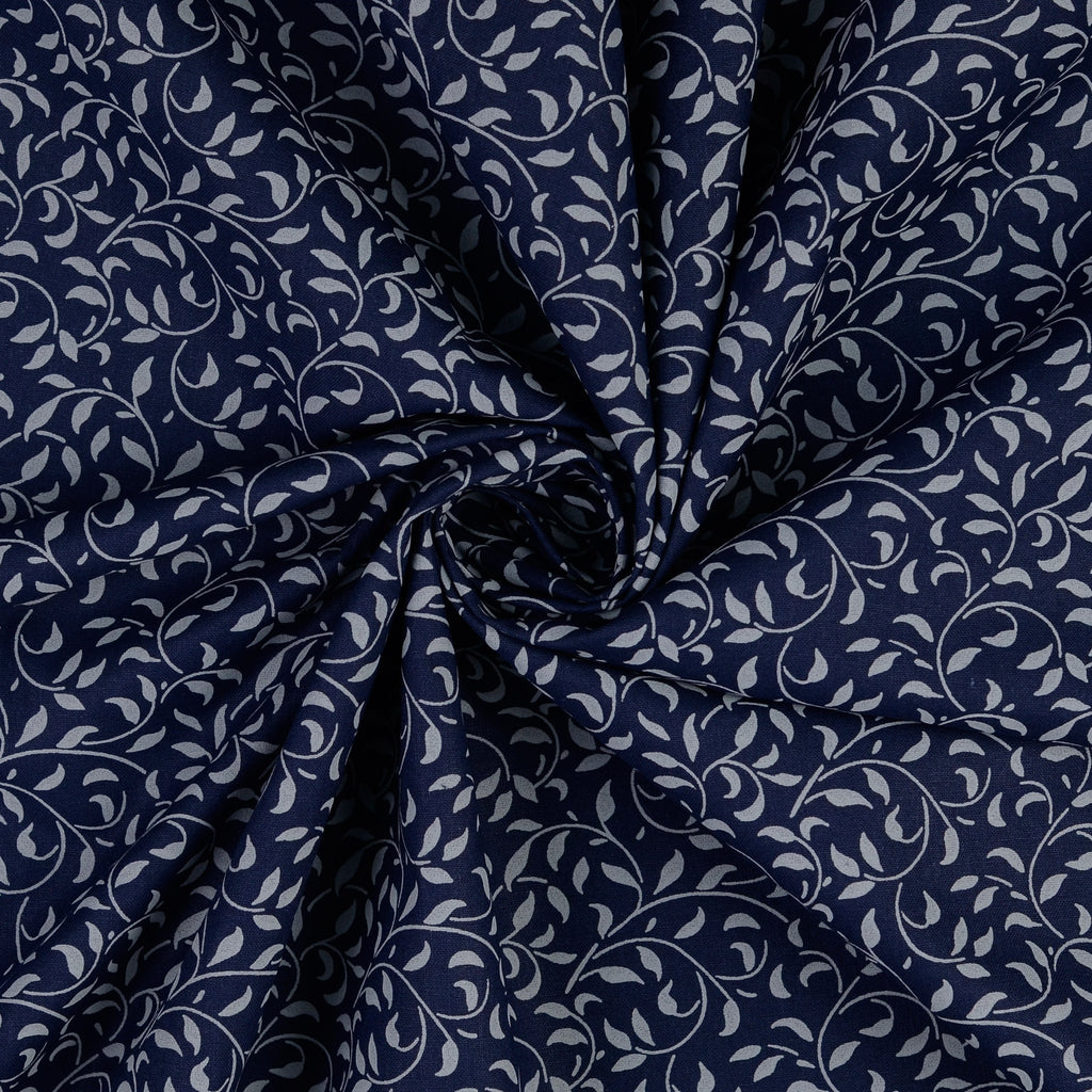 Baumwolle Cretonne in dunkelblau mit kleinen feinen Ranken als Aufdruck